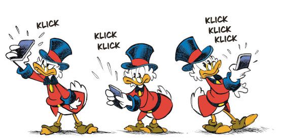 Es gibt Momente im Leben, in denen man sich ganz schön alt fühlt. Der eigene moralische Kompass scheint aus der Mode gekommen zu sein. Alle anderen wirken klüger als man selbst und werden in Rekordzeit mit Methoden reich, von denen man noch nie etwas gehört hat. So ergeht es Onkel Dagobert im jüngsten Disney-Hommage-Band. Darin verliert Dagobert den Titel als »reichste Ente der Welt« an Kersten Duck, der sein Vermögen mit der Kryptowährung Bitquack angehäuft hat.
