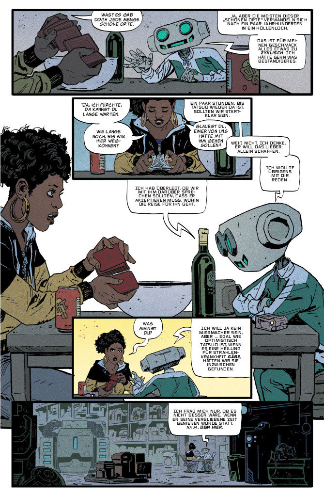 Time Before Time macht Spaß. Im ersten Band hat alles noch seine Ordnung, da die Zeitreisen gefühlt nur in eine Richtung gehen und es einfach ist, den Zeitsträngen zu folgen. Ab Band 2 wird es schließlich unübersichtlich, und das ist gut so. Geschichten aus Raum und Zeit müssen verwirrend sein. Aber keine Angst: Die Autoren haben ihre Story im Griff. Wenn etwas nicht klar sein sollte, dann sorgt Zurückblättern für erhellende Momente. Zudem erfahren wir, dass es neben dem Syndikat, für das Tatsuo arbeitete, noch weitere Fraktionen mit Zeitreisetechnik gibt. In Band 3 schließlich bauen die Autoren Tatsuos Figur weiter aus und eröffnen einen weiteren vielversprechenden Handlungsstrang. Außerdem wird über alle Alben hinweg auch brachiale Action geboten: Durch den gekonnten Einsatz von Schusswaffen werden im Schnitt gar nicht mal so wenige Figuren aus dem Weg geräumt. Auf die beiden Abschlussbände darf man also gespannt sein.
