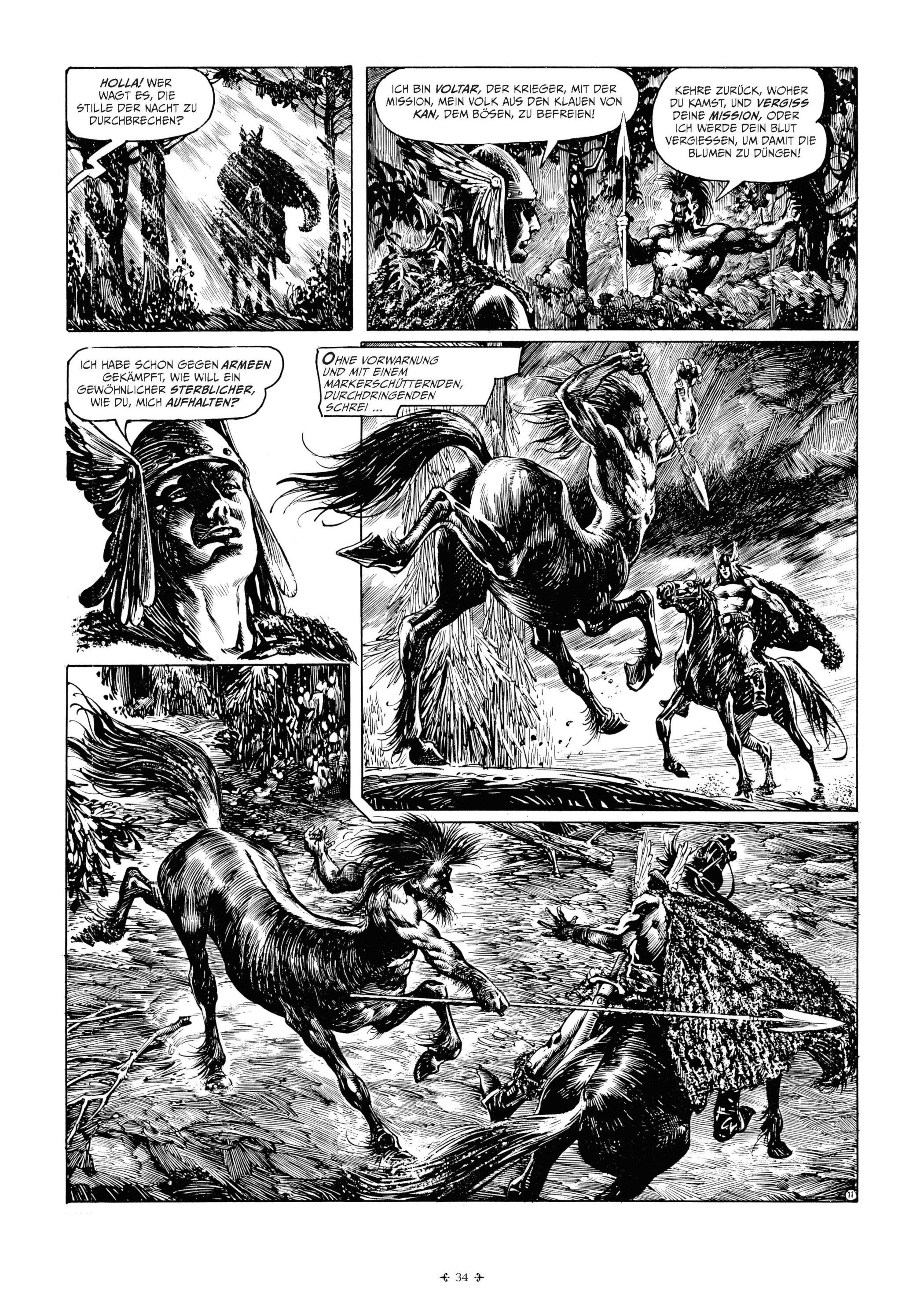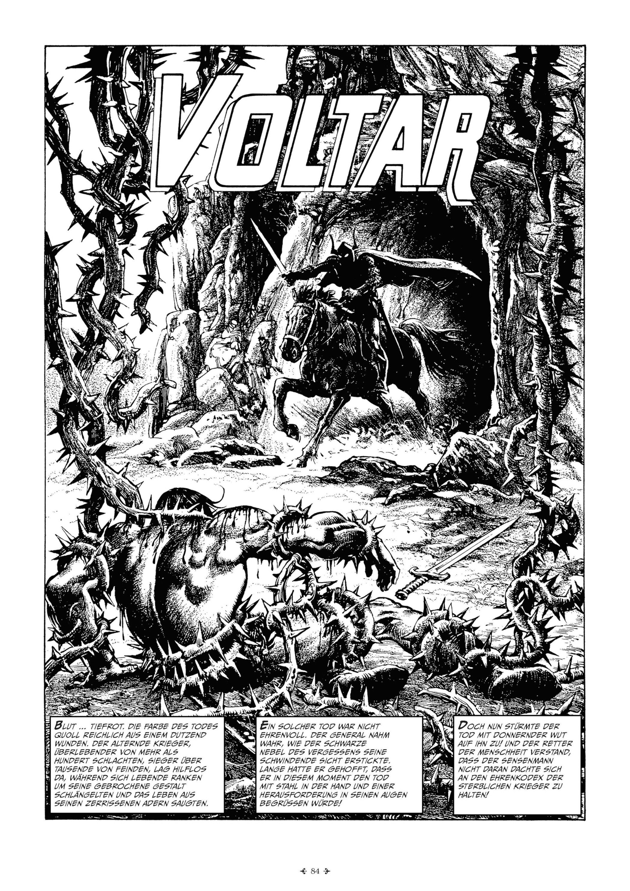 Wer Conan mag, dürfte sich in diesem Erzähluniversum wohlfühlen. Voltar ist ein schwertgewandter Recke, der im Zuge seiner Abenteuer mit reichlich Magie, dämonischen Kreaturen und düsteren Kriegsherren konfrontiert wird. Hilflose Damen gibt es nicht zu retten, darauf hatte sein Schöpfer Alfredo P. Alcala keine Lust. Da er aber wusste, dass das Weib immer lockt, zumindest männliche Comicfans, sorgte er dafür, dass es trotzdem einiges zu sehen gibt. Nur dass diese Frauen sich selbst gut zu helfen wissen und bisweilen brandgefährlich sind. Eine schöne Aussicht kann eine trügerische Illusion sein, die eine findige Magierin verbirgt oder, eventuell noch schlimmer, ein blutrünstiges Ungetüm.