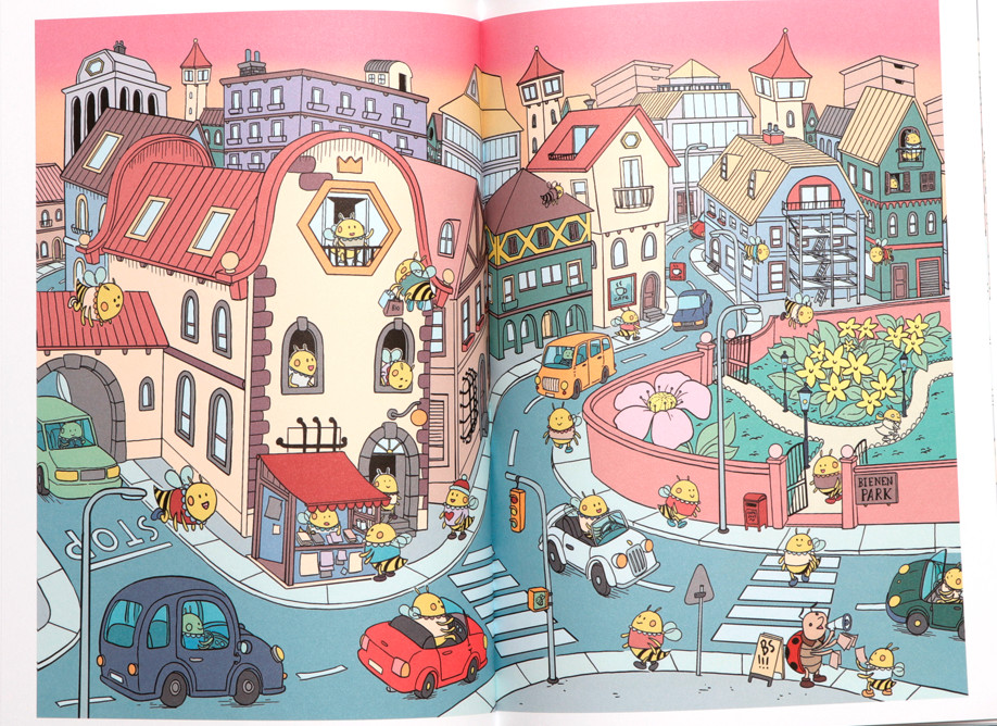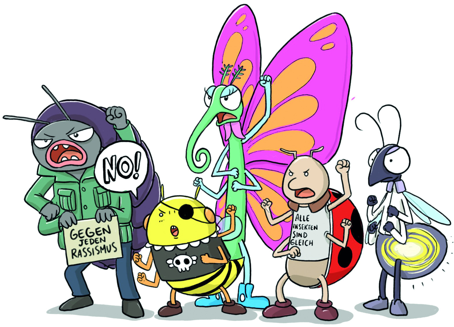 Die Metapher des Bienenstaates eignet sich gut, um Kindern die einem faschistischen Regime typische Gleichstellung, das Vorgaukeln einer glücklichen und funktionierenden Gesellschaft und die Konsequenzen bei Nichteingliederung begreifbar zu machen. Auch wenn es an einigen Stellen sehr klischeehaft wirkt, ist es doch eine gelungene Heranführung an das Thema. Gerade die sehr cartoonesk und niedlich gezeichneten Insekten und die mehrfach eingefügten doppelseitigen Wimmelbilder, die das Leben in Bienenstadt zeigen, lassen spannende Brüche entstehen und laden zum Reden ein. Da fällt unser Marienkäfer schon sehr auf!