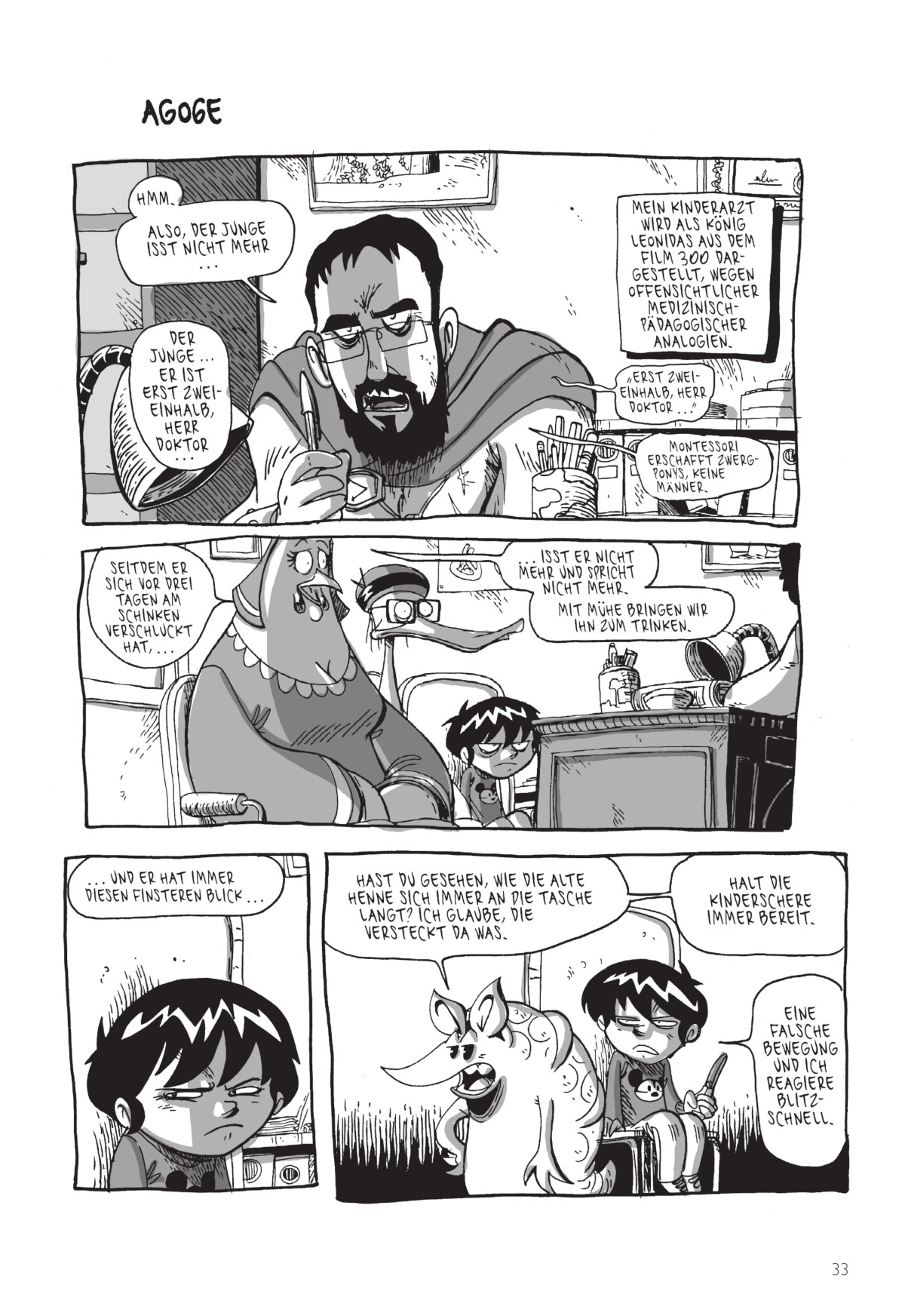 In Vergiss meinen Namen erzählt er die Geschichte seiner Mannwerdung und die Geschichte seiner Familie. Seine Oma hat ihm nämlich versprochen, dass sie erst sterben wird, wenn er zum Mann geworden ist. Und das Buch beginnt mit ihrem Tod. Also muss sich Zero auf eine Spurensuche begeben, er muss herausfinden, was sie damit meinte und wie das für ihn Realität werden kann. Auf dieser Reise muss er lernen, Fragen zu stellen und Antworten einzufordern, die schmerzhaft sind und deren Auflösung nicht immer zufriedenstellend oder ausreichend sind. Aber er begreift auch, dass der Prozess selbst, die Auseinandersetzung und die Gespräche Heilung und Reifung bringen. Das mag jetzt sehr schwer klingen, Zerocalcare gelingt es aber, all das mit viel Witz und Doppeldeutigkeit zu präsentieren. In Anspielung an Inio Asanos Gute Nacht, Punpun sind alle Familienmitglieder des Autors als Federvieh dargestellt. Die Mutter ist ein gluckenhaftes Huhn, die Oma ein junges Küken und der Vater eine tollpatschige Ente. In ähnlicher Weise wie bei Asano tragen diese anthropomorphen Darstellungen dazu bei, die Distanzen innerhalb einer Familie aufzuzeigen, dies aber sehr humoristisch und liebevoll.
