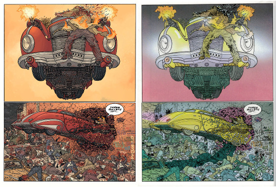 Neu und alt: Links Dave Stewarts Kolorierung, rechts ein Scan der US-Originalausgabe.