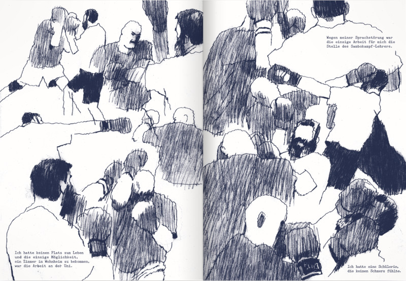 Ein bärtiger Mann, unterwegs in der Großstadt. Er steht im Mittelpunkt dieses dokumentarischen Comics. Er heißt Vyacheslav, ist in Moskau zu Hause, lebt von Mixed-Martial-Arts-Kämpfen und öffnet sich hier, um von sich und seinem Leben zur erzählen. Es dauert einen Moment, bis man realisiert, dass Vyacheslav zu einem nicht näher beschriebenen Treppenhaus unterwegs ist, um dort auf ausgebreiteten Zeitungen zu schlafen. Der Begriff Strannik (russisch für Wanderer, aber auch Heimatloser) passt gut zu ihm und klingt besser als Obdachloser.