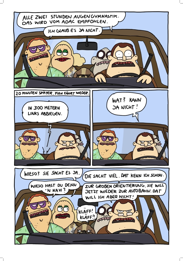 Als Comic wäre das Bistro fürs Auge etwas langweilig, so ist die Idee mit der Reise sehr gut. Das Vorurteil »Comics sind für Kinder« bestätigt dieses Buch nicht, dafür aber dieses: »Comics sind komisch«. Es ist halt ein spezieller Humor, vieles ist auch durchaus sehr redundant – aber das ist bei Formaten wie Little Britain oder Dittsche auch nicht anders.